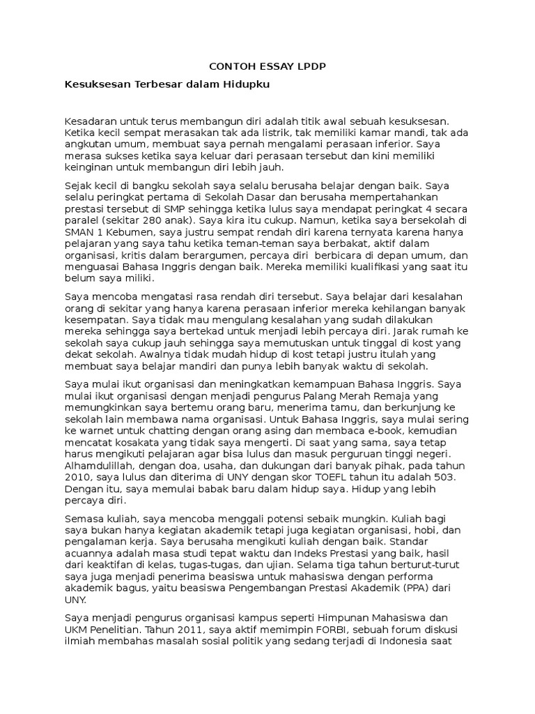 Doc Contoh Essay Masuk Perguruan Tinggi Atau Melamar Peserta Calon Penerima Beasiswa Muhammad Fauzi Ozi Academia Edu